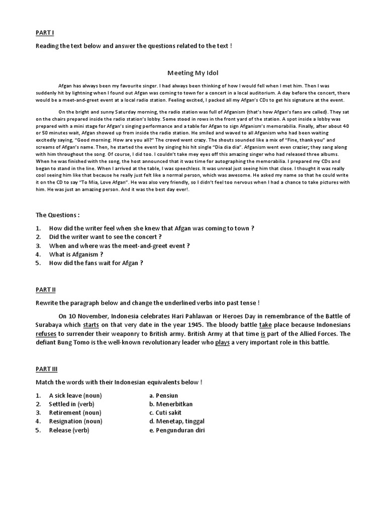 Contoh Kalimat Simple Past Tense Meeting My Idol Afgan Brainly Co Id from id-static.z-dn.net We did not find results for: Check spelling or type a new query. Maybe you would like to learn more about one of these?
